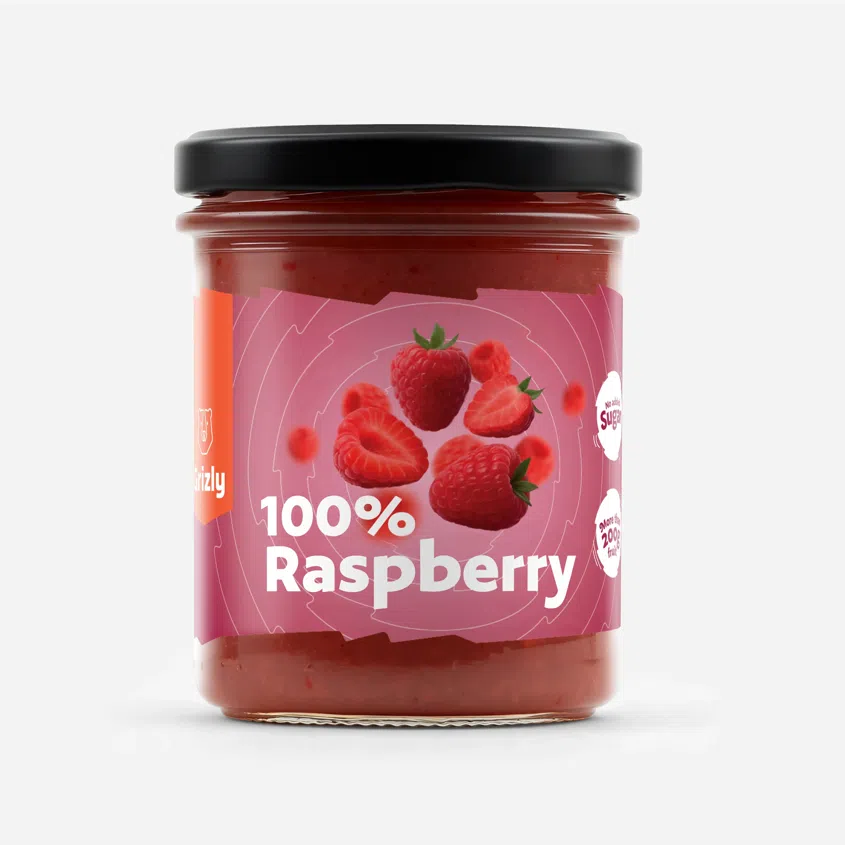 GRIZLY 100% málna hozzáadott cukor nélkül, extra gyümölcsdarabokkal, 200 g