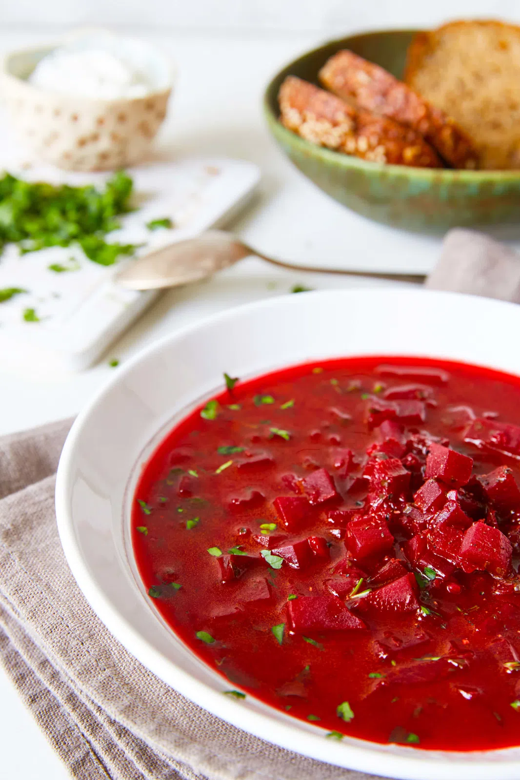 Már kész krémleves, pasztőrözve, céklaízzel.
