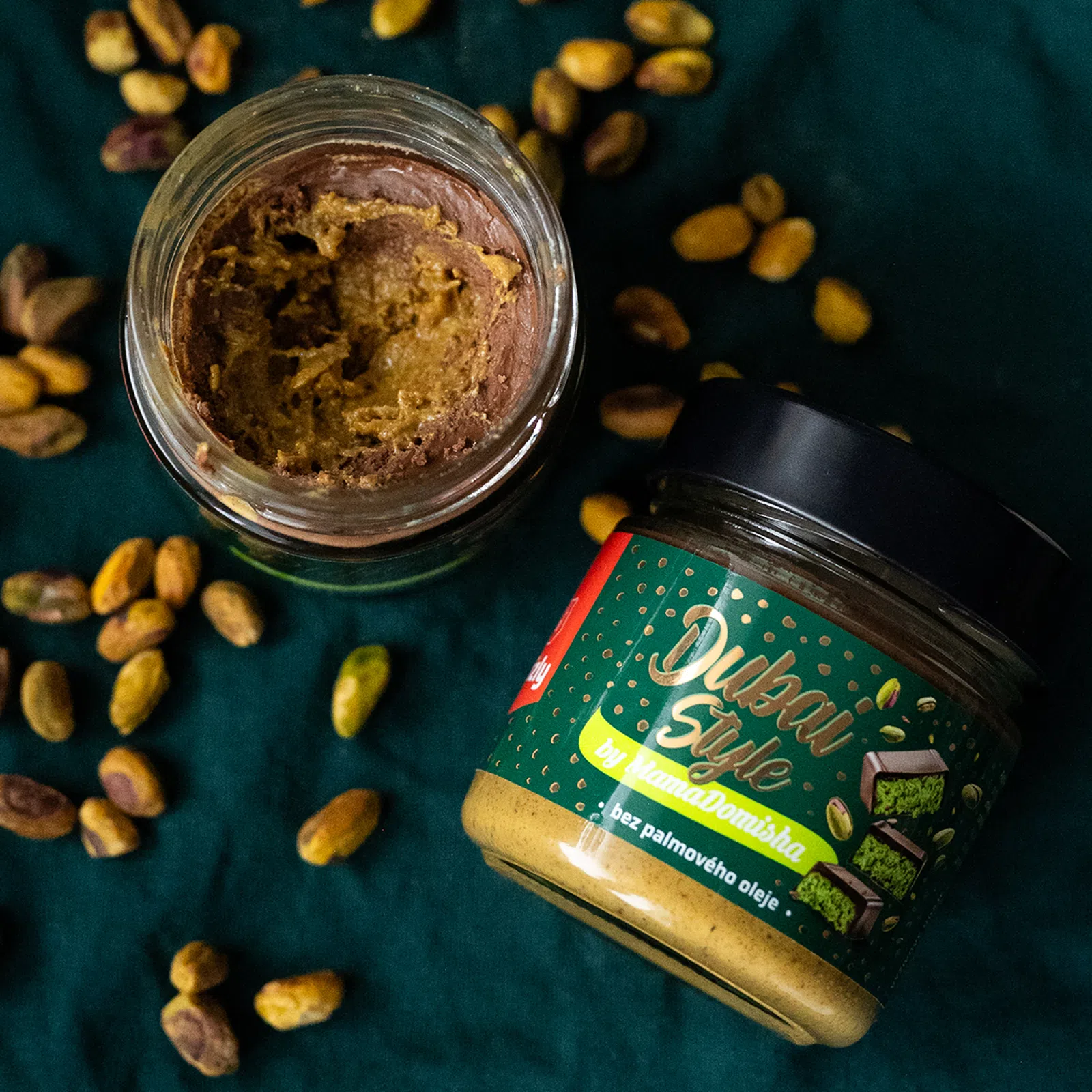 Nem szükséges Dubajba repülnöd, hogy megkóstold ezt a luxus finomságot, amelyet a híres dubaji csokoládé ihletett. A Dubai style spread krém receptje, akárcsak maga a dubaji csokoládé, a hagyományos arab receptekből ered. Ötvözi az exkluzív csokoládé gazdag ízét, a légies 100%-os pisztácia krémet és a ropogós kadayifot. A kadayif híres enyhén édes ízéről és a vékony tésztaszálakról, amelyek egyedülálló ropogósságot adnak – ezt találod ebben a krémben is. Hagyd, hogy elragadjon az ízek és illatok egyedülálló kombinációja. De vigyázat – gyorsan fogy! Amint megkóstolod az első kanálnyit, nem fogsz tudni leállni.