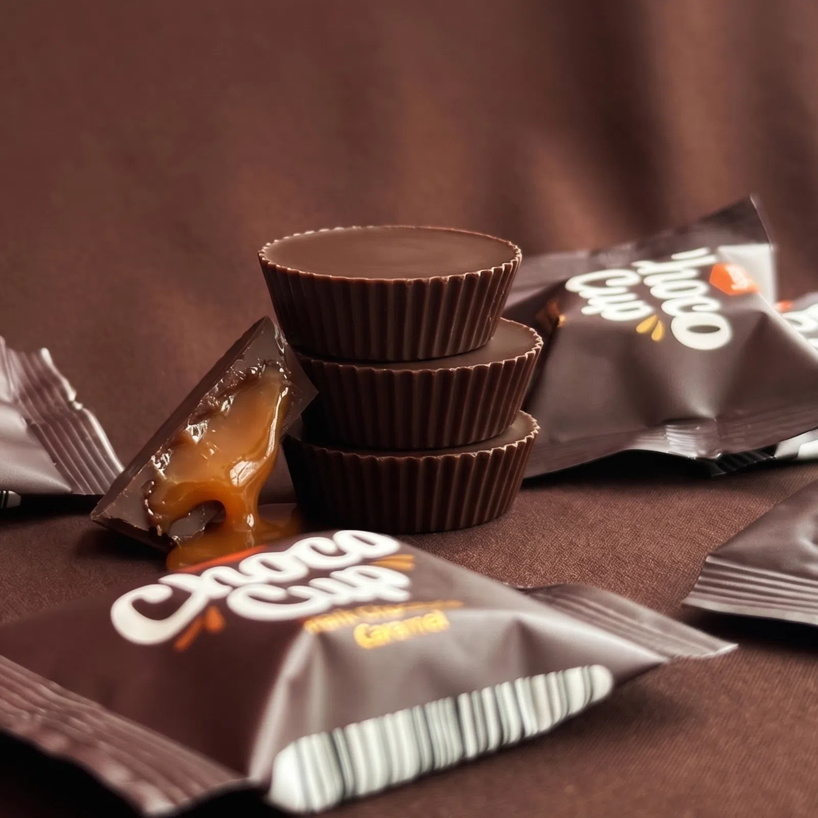 Csokoládés kosárkák 70%-os étcsokoládéval és lágy karamell töltelékkel. Ez édesebb ízt ad enyhén sós utóízzel, amely kiegyensúlyozza a csokoládé intenzitását. Praktikus méret egy gyors édes szünethez.