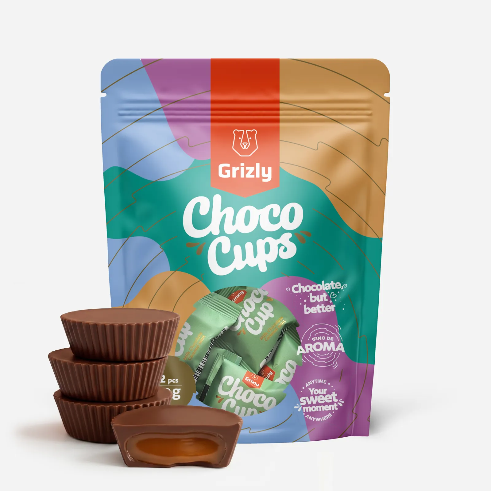 GRIZLY Choco Cups tejcsokoládé karamellával és mentával, 120 g
