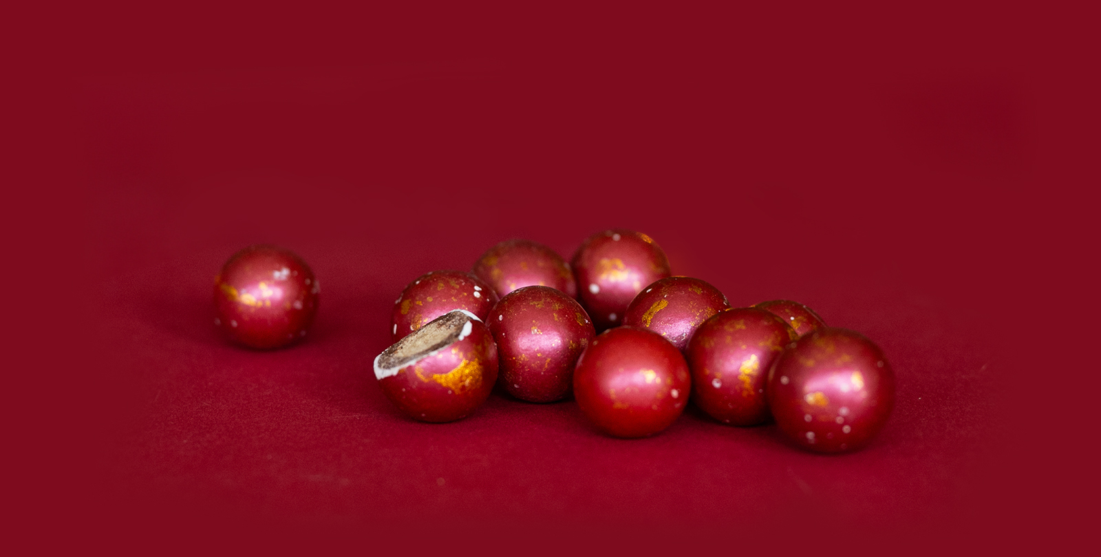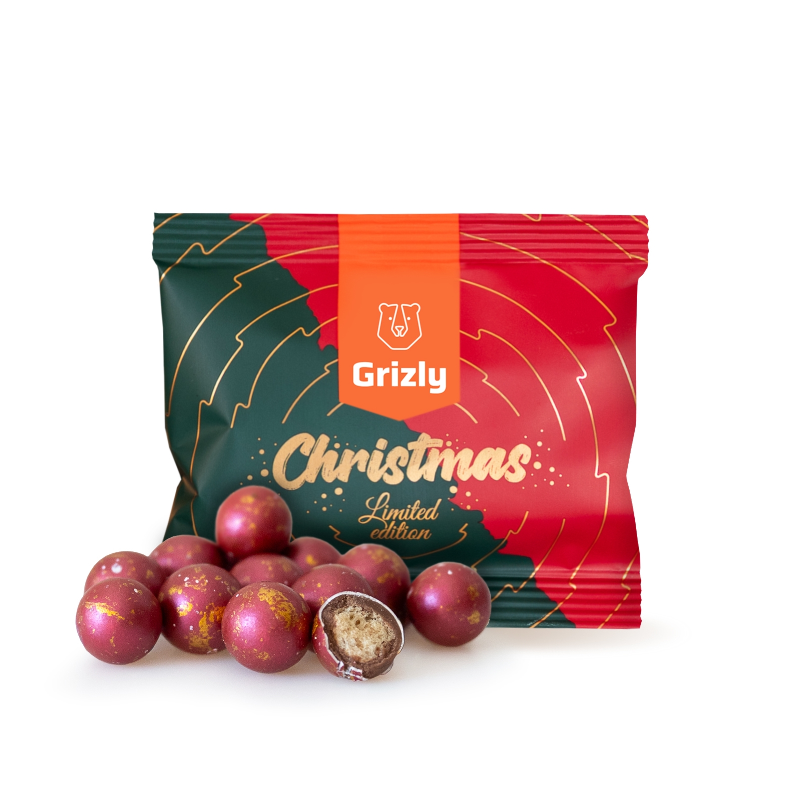 Első pillantásra a gyönyörű piros-arany csillogó gömbjeink díszként néznek ki. És részben igaz, hogy ez a gyönyörű csillogó dolog ehető! Tényleg! És nagyon finom – mint a mézeskalács. Valójában ez egy roppanós gabonagolyó, kakaós bevonattal és cukros csillogó héjjal. Ha hozzávesszük, hogy a golyókat gyönyörű karácsonyi csomagolásba tettük, akkor egy teljes karácsonyi ehető ajándékot kapsz. A golyók ugyancsak gyönyörűen mutatnak karácsonyi asztali díszként, amit az étkezés végén akár egy szó szerint arany pontként fogyaszthatsz el.