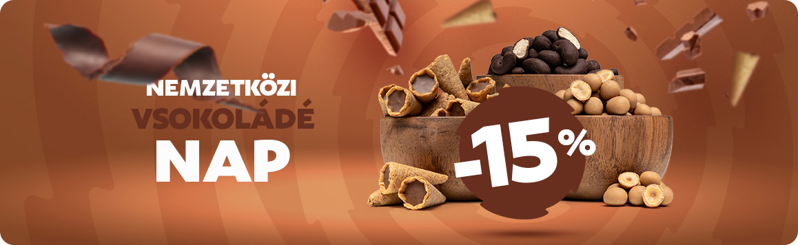 A „Diófélék csokoládéban” és „Csokoládé” kategória finomságait most 15% kedvezménnyel vásárolhatja meg, használja a kuponkódot: