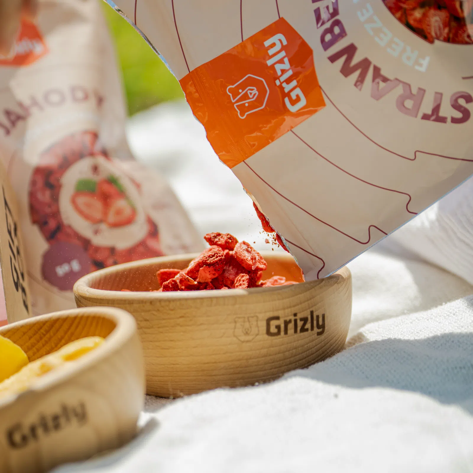 Szórhatsz bele például dióféléket – akár natúr, akár ízesített változatban. Remek választás a magkeverék is. Ha inkább édesebb ízeket kedvelsz, válogass liofilizált gyümölcseink közül! Képzeld csak el, milyen jól mutatnak ebben a fa tálban például a fagyasztva szárított eprek vagy a népszerű GRIZLY mangó exclusive. A tál kiválóan alkalmas még granolák vagy a Grizly Salties sós keverékek tálalására is. Na és te mit töltesz bele?