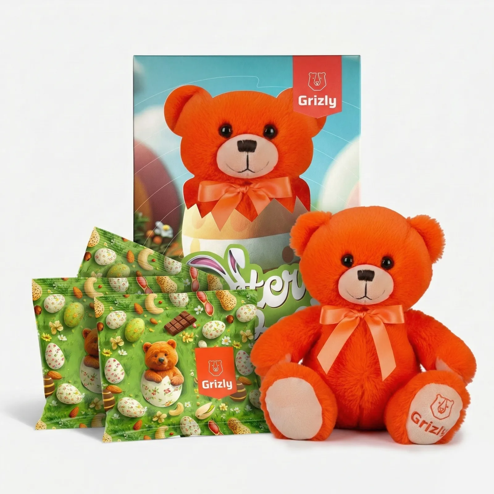 Felejtsd el az unalmas csokinyuszikat – idén az Easter Bear a sláger. Ez a húsvéti ajándékcsomag egy pihe-puha plüssmackót és a gyerekek kedvenc finomságait egyesíti egy vidám, színekkel, ízekkel és örömmel teli csomagban. Tökéletes alternatívája a hagyományos húsvéti ajándékoknak, ráadásul azonnal ajándékozható, külön csomagolás és gondolkodás nélkül. Örömet szerez a locsolóknak, gyerekeknek és unokáknak, és gondoskodik a legszebb húsvéti pillanatokról – akár locsolkodáskor, akár a kertben zajló tojáskeresés közben.