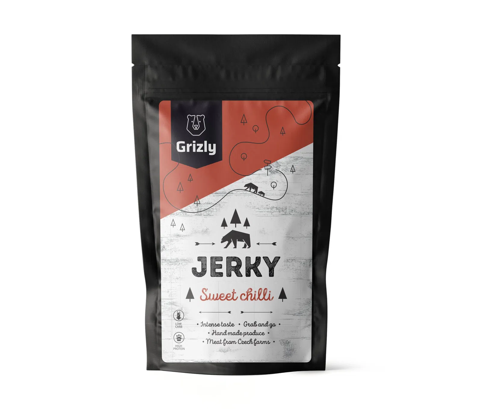 A GRIZLY prémium marhahúst szárítva ideális rágcsálnivalóvá alakítják útközben vagy sportolás után, egy kis chilivel fűszerezve, hogy egy csipetnyi fűszerességet adjon hozzá.