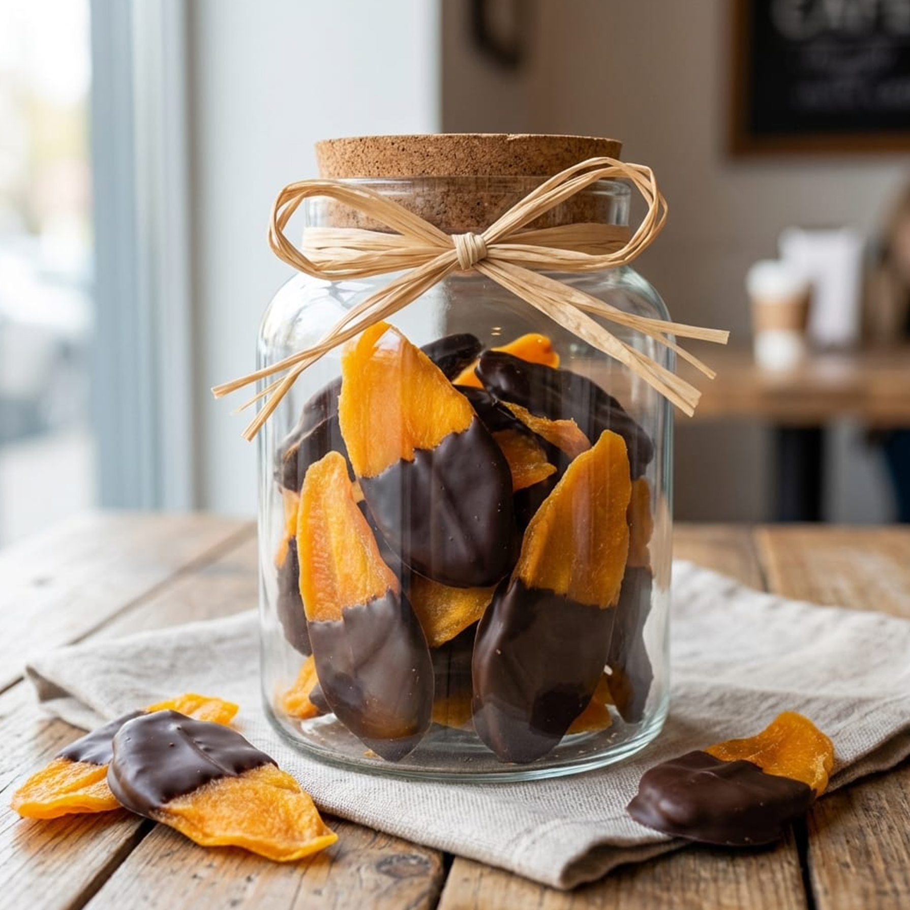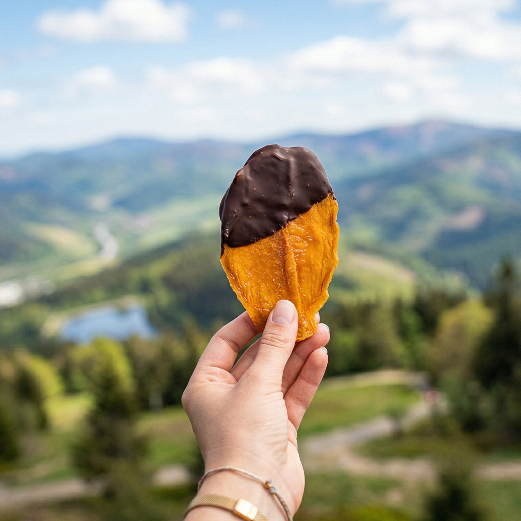 Kényeztesse magát szaftos, félig minőségi étcsokoládéba mártott aszalt mangóval. Az egzotikus édes-savanykás íz és az intenzív kakaós élmény tökéletes párosítása. Ideális gyors snack munkába, kis jutalom egy fárasztó nap után vagy stílusos kínálat vendégeknek. Vigyázat – gyorsabban elfogy, mint gondolná.