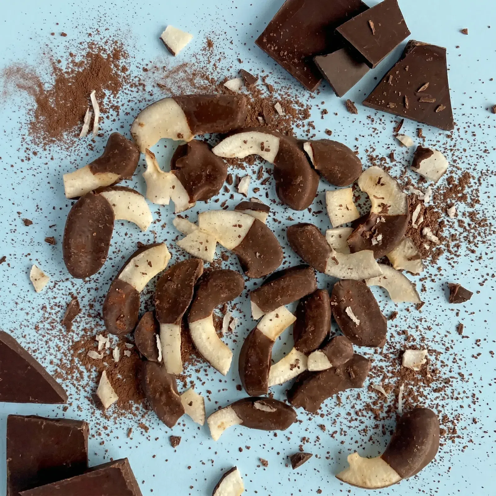 Ropogós kókuszchipszek, félig valódi étcsokoládéba mártva, pálmaolaj nélkül. Ideális finomság csak úgy nassolni, vagy joghurtba és kásába keverve az extra ropogósságért. Próbáld ki stílusos toppingként desszertekhez és fagylalthoz, vagy gyors energiaként útközben.