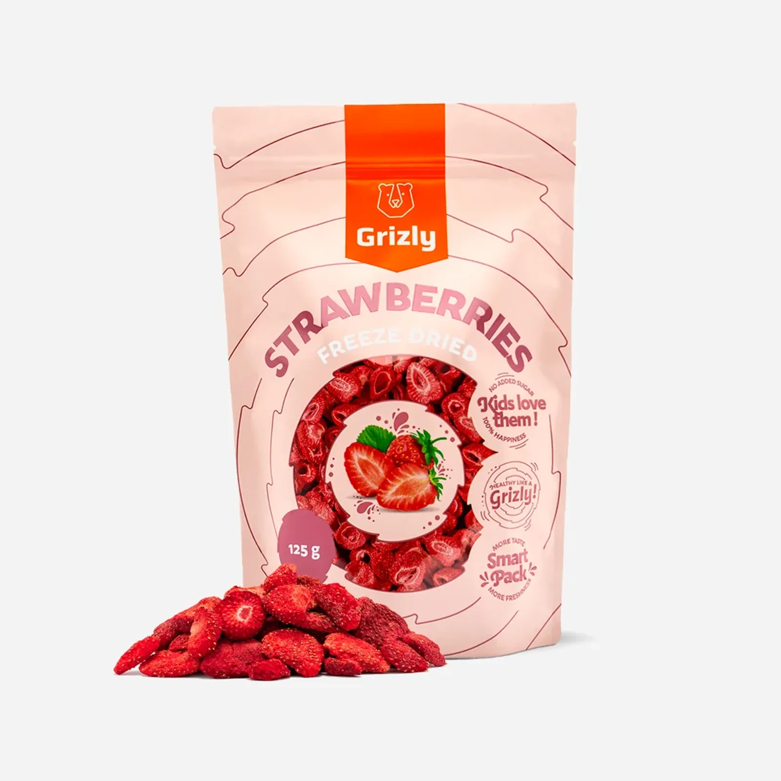 Amint megkóstolod a lyo epreinket, már nem akarsz másikat. A kíméletes fagyasztva szárításnak köszönhetően a GRIZLY lyo eper tele van vitaminokkal és tápanyagokkal, mint a friss eper. Kiváló vitamin- és rostforrás. Ráadásul ropogósak, mivel a liofilizáció eltávolította belőlük a vizet. A visszazárható csomagolásban pedig megőrzik ezt a tulajdonságukat.