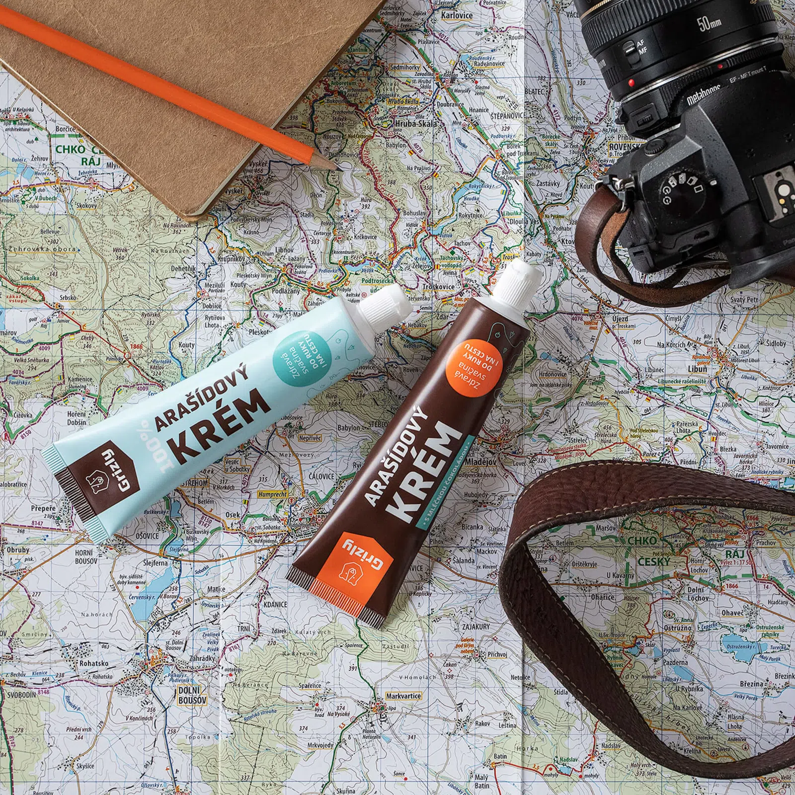 GRIZLY Földimogyoróvaj tejcsokoládéval tubusban - a praktikus csomagolásnak köszönhetően útközben is fogyasztható. A kiegyensúlyozott tápértékek és a nagyszerű íz gyönyörködtetni fogja Önt.