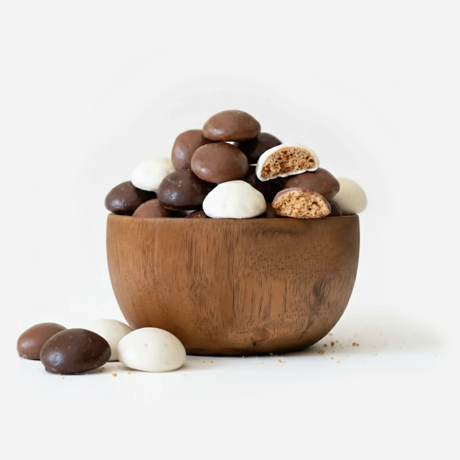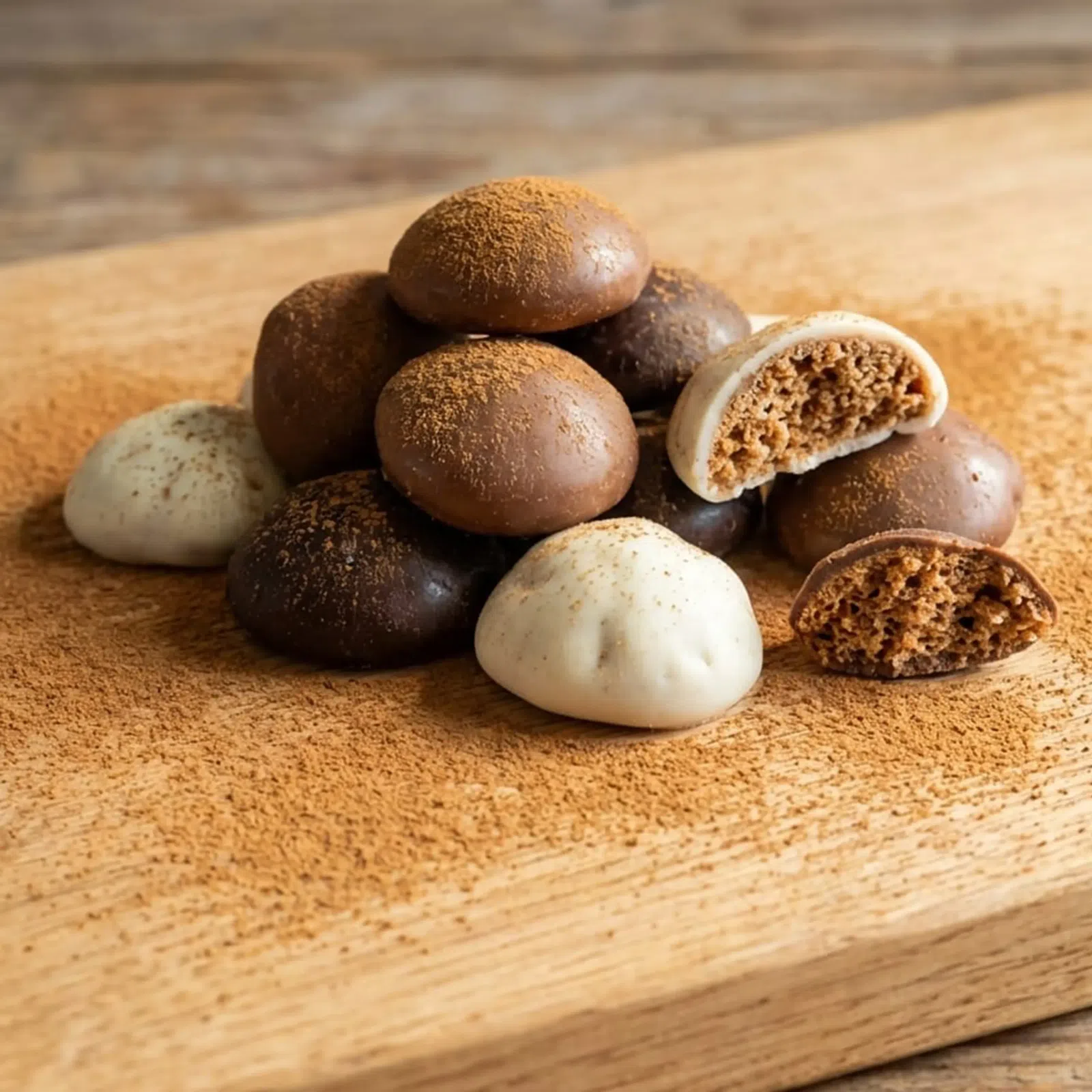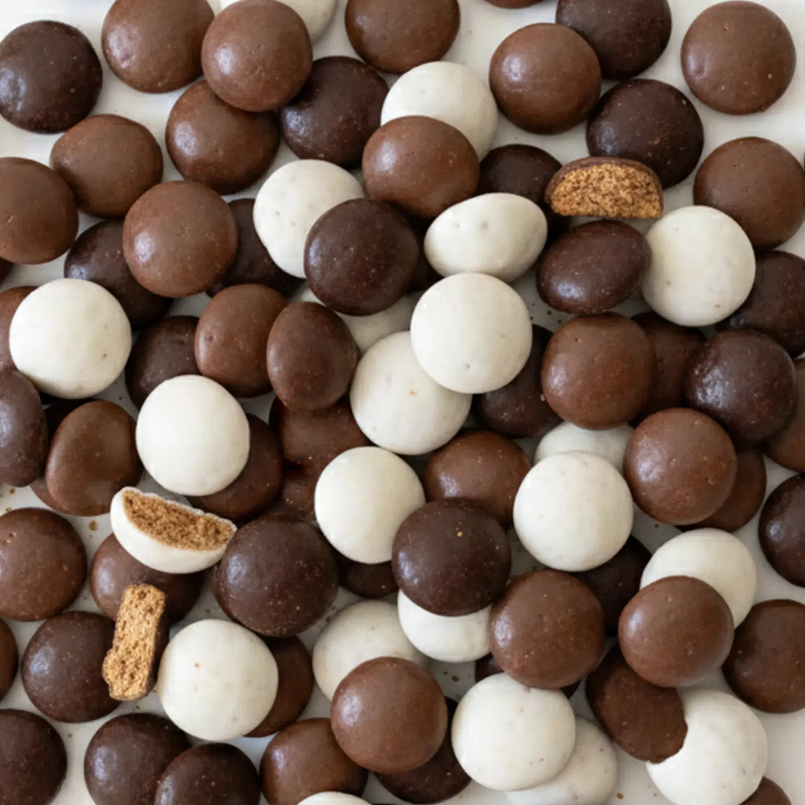 A háromszínű, csokoládéba mártott kekszek minden hagyományos édességet kedvelő ínyencet elvarázsolnak. A ropogós mézeskalácsos kekszeket háromféle prémium minőségű csokoládéval – tej-, ét- és fehér csokoládéval – vontuk be, hogy mindenki megtalálja benne a fűszeres íz és a lágy édesség tökéletes harmóniáját.