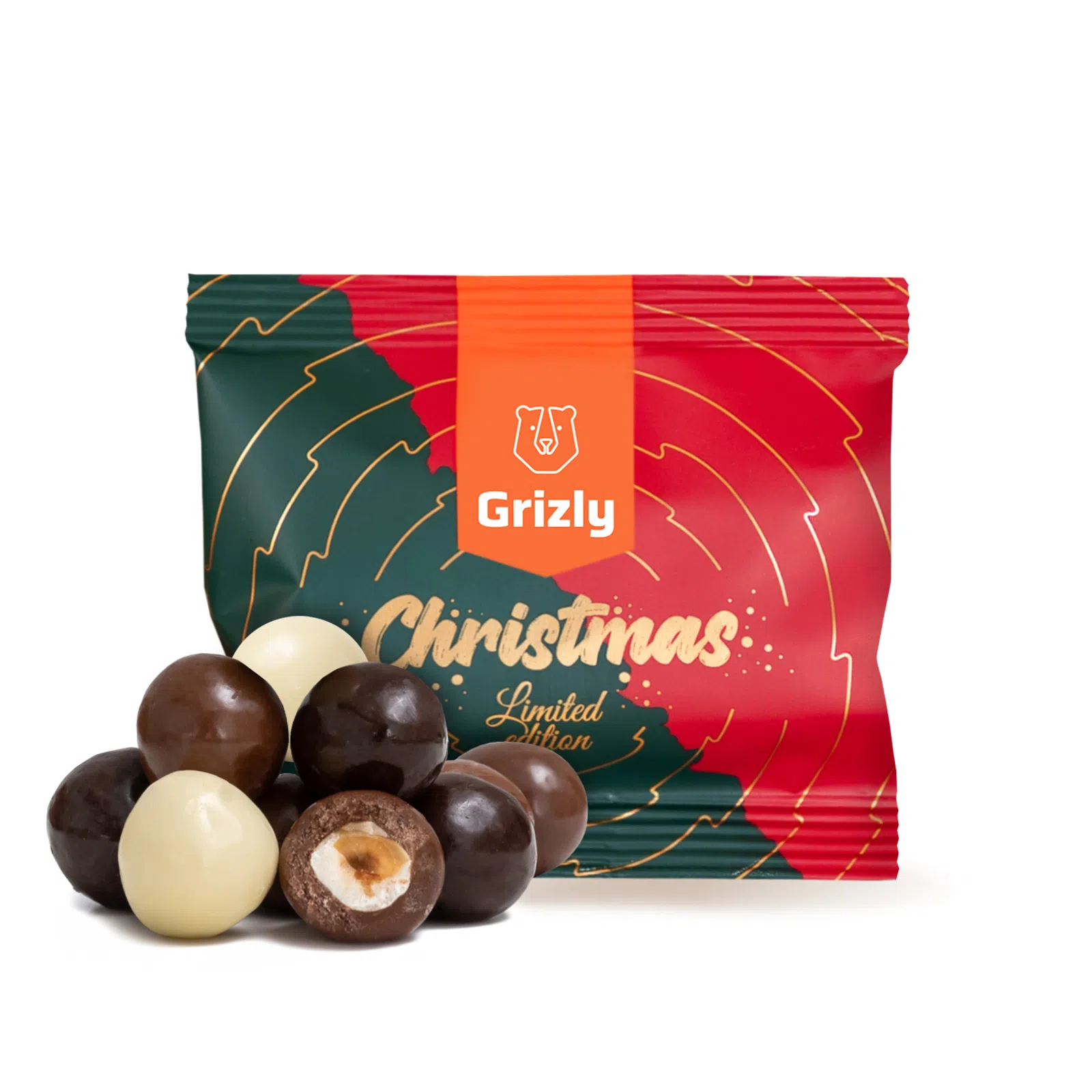 Ez egy kis kedves karácsonyi meglepetés. Amint kinyitod a háromszínű mogyoróval töltött csomagot, elindulhat a találgatás, vajon először a tejcsokoládés, a keserű csokoládés vagy a finom fehér csokoládés mogyorót kóstolod meg.