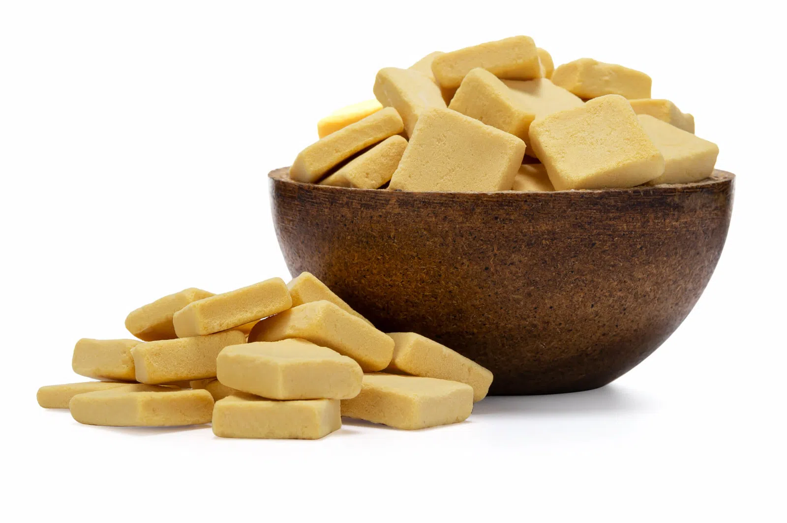 A turmixkockák gyümölcspüréből készülnek, további összetevők nélkül, majd gondosan fagyasztva szárítják őket.
