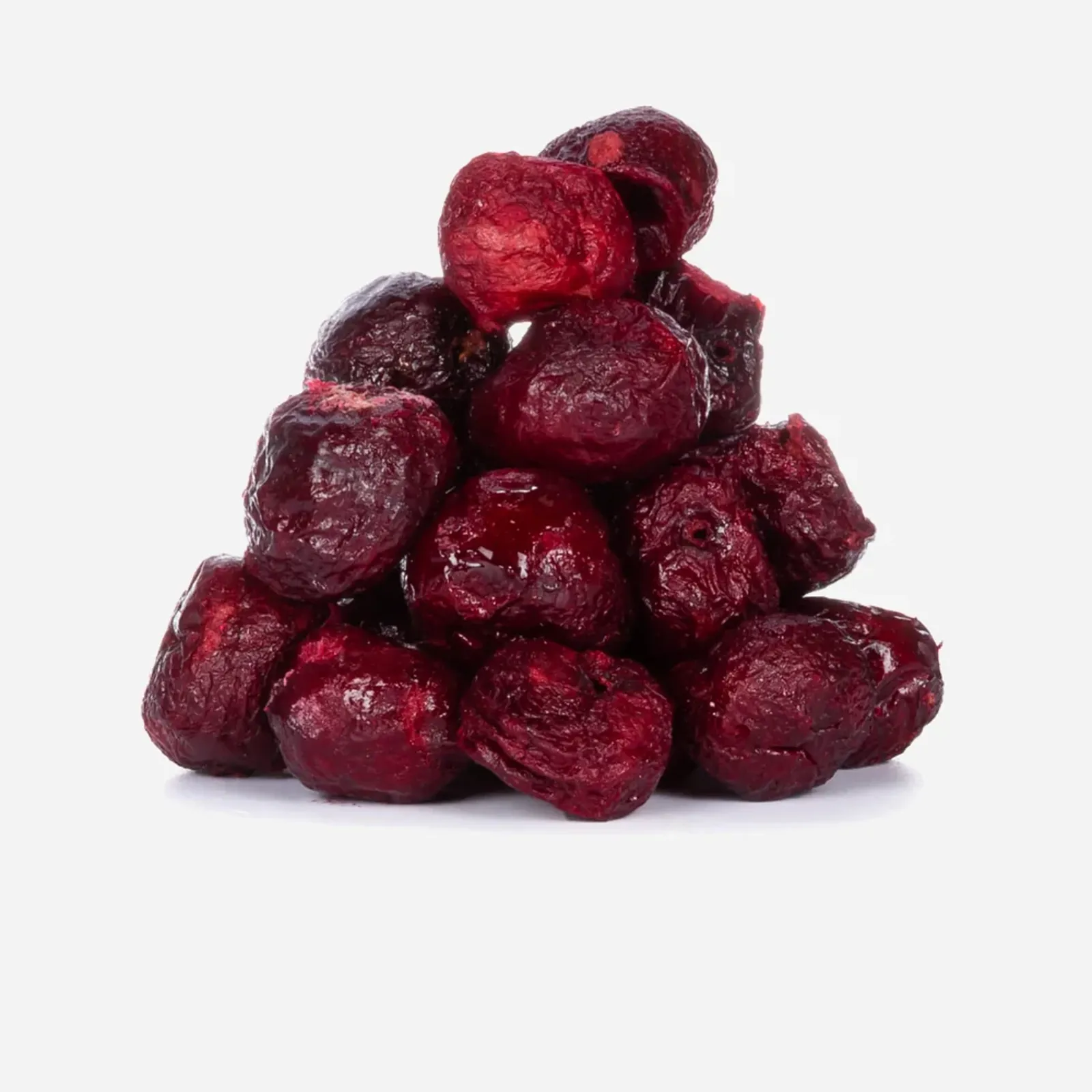 A liofilizált meggy jellegzetesen savanykás és ráadásul kellemesen ropogós. Szórják őket reggeli zabkására, egészséges desszertekre és poharakba, amelyeket otthon elkészíthetnek a konyhában. Próbálják ki őket házi granolában vagy sütés közben. A meggy antioxidáns tulajdonságokkal rendelkezik, ásványi anyagokat tartalmaz, különösen jódot, vasat, magnéziumot és káliumot. A liofilizáció egy fagyasztással végzett gyümölcs szárítási folyamat. A gyümölcsöt először gyorsan lefagyasztják, majd alacsonyabb nyomáson szárítják, ahol a víz a gyümölcshöz tartozó gőzzé alakul, így a gyümölcs megtartja természetes szerkezetét, színét, illatát és legfontosabb, tápértékét, beleértve az összes vitamin és ásványi anyagot, amelyek friss gyümölcsben megtalálhatók. Egyszerűen fogalmazva, mindent, amit friss gyümölcsben találunk, megtalálunk a liofilizált változatban is.
