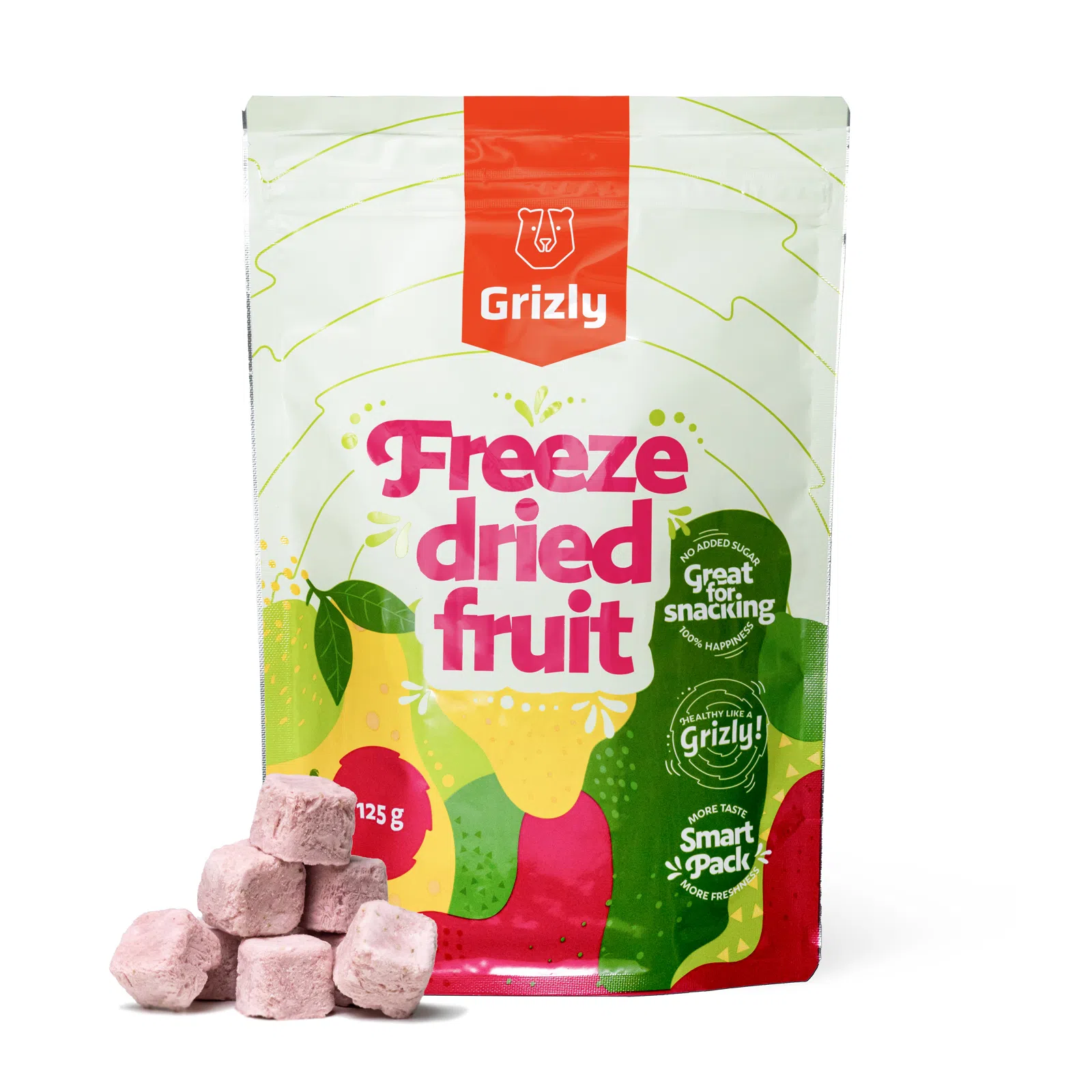 GRIZLY LYO kókuszkockák eperrel, 125 g
