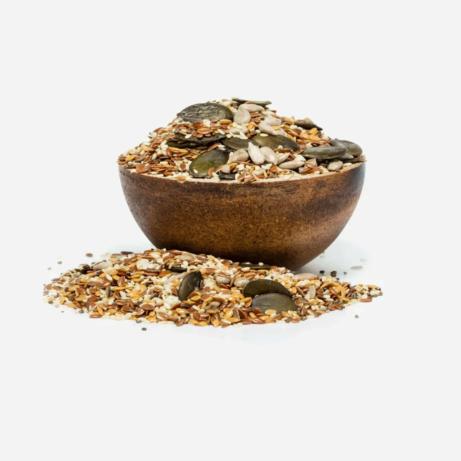 A magkeverék hatféle, tápanyagokban gazdag magból készült, napraforgóból, arany és barna lenből, tökből és chiából. A magkeveréket remekül használhatod leves, zabkása, müzli vagy turmix mellé, és javasoljuk, hogy egészséges kenyérsütő keverékhez is adj hozzá.