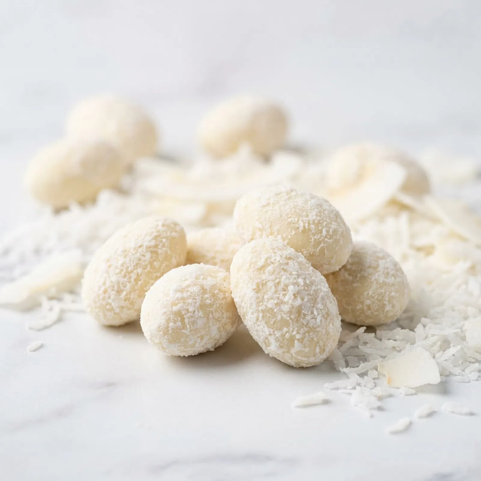 Gondosan válogatott mandula, prémium fehér csokoládé és ropogós kókusz. Minden falat tökéletes egyensúlyt teremt az intenzív íz és az elegáns édesség között.