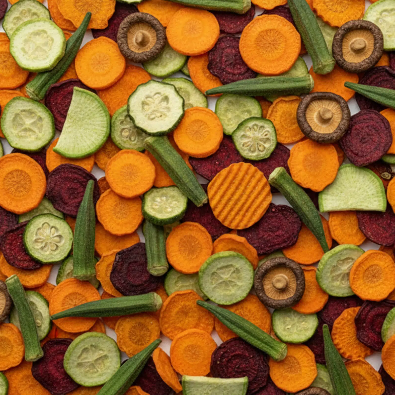 Kíméletesen, alacsony hőmérsékleten vákuumban sütve. Ennek köszönhetően a zöldségek megőrzik természetes színüket és teljes ízüket, miközben kevesebb zsírt tartalmaznak, mint a hagyományos chipsek. Könnyű snack bűntudat nélkül, amelyet a nap bármely szakában élvezhet.