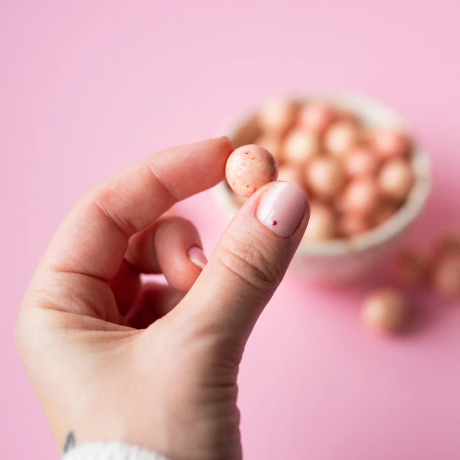 | Adminisztratív besorolás: | Rizs- és malátagolyók fehér csokoládéba és málnába burkolva. |