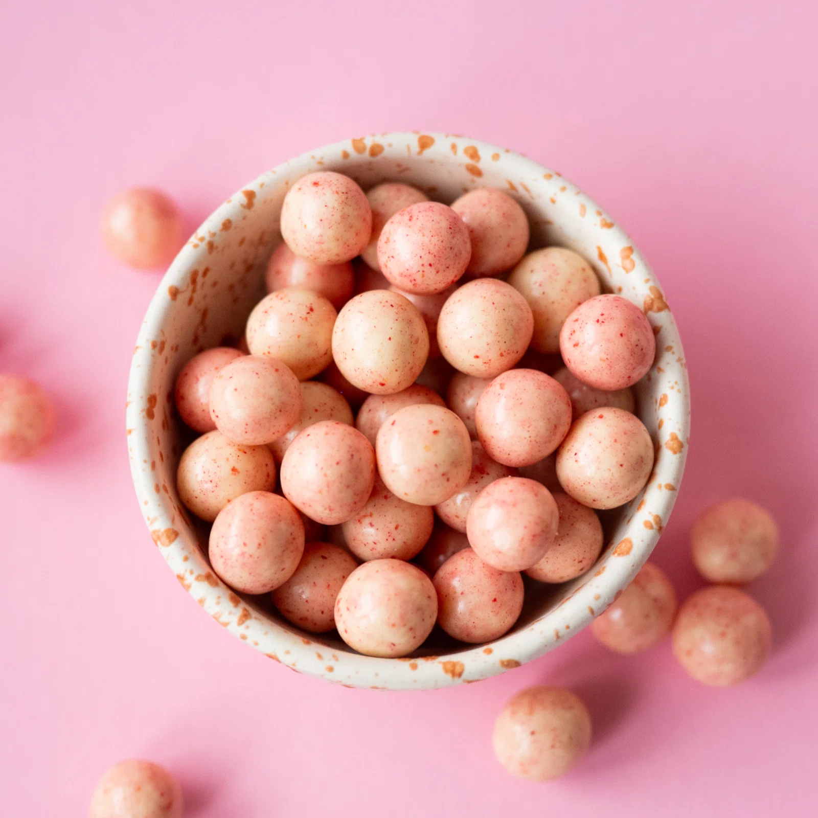 A húsvéti nassolás sokféleképpen történhet. A csokoládétojásoktól és nyuszifiguráktól kezdve egészen ezekig a ropogós rizsgolyókig, amelyeket joghurtba mártottunk és málnával ízesítettünk.