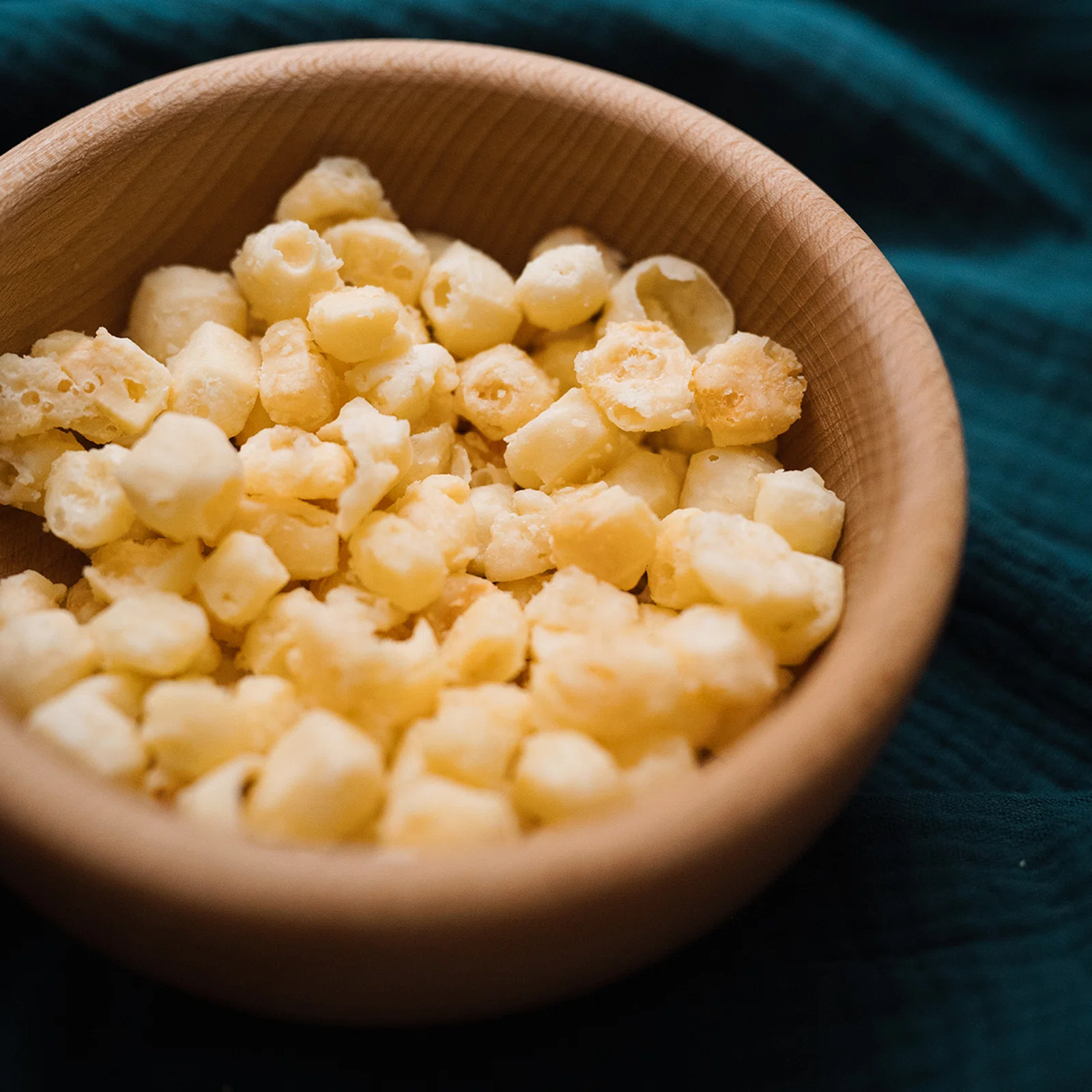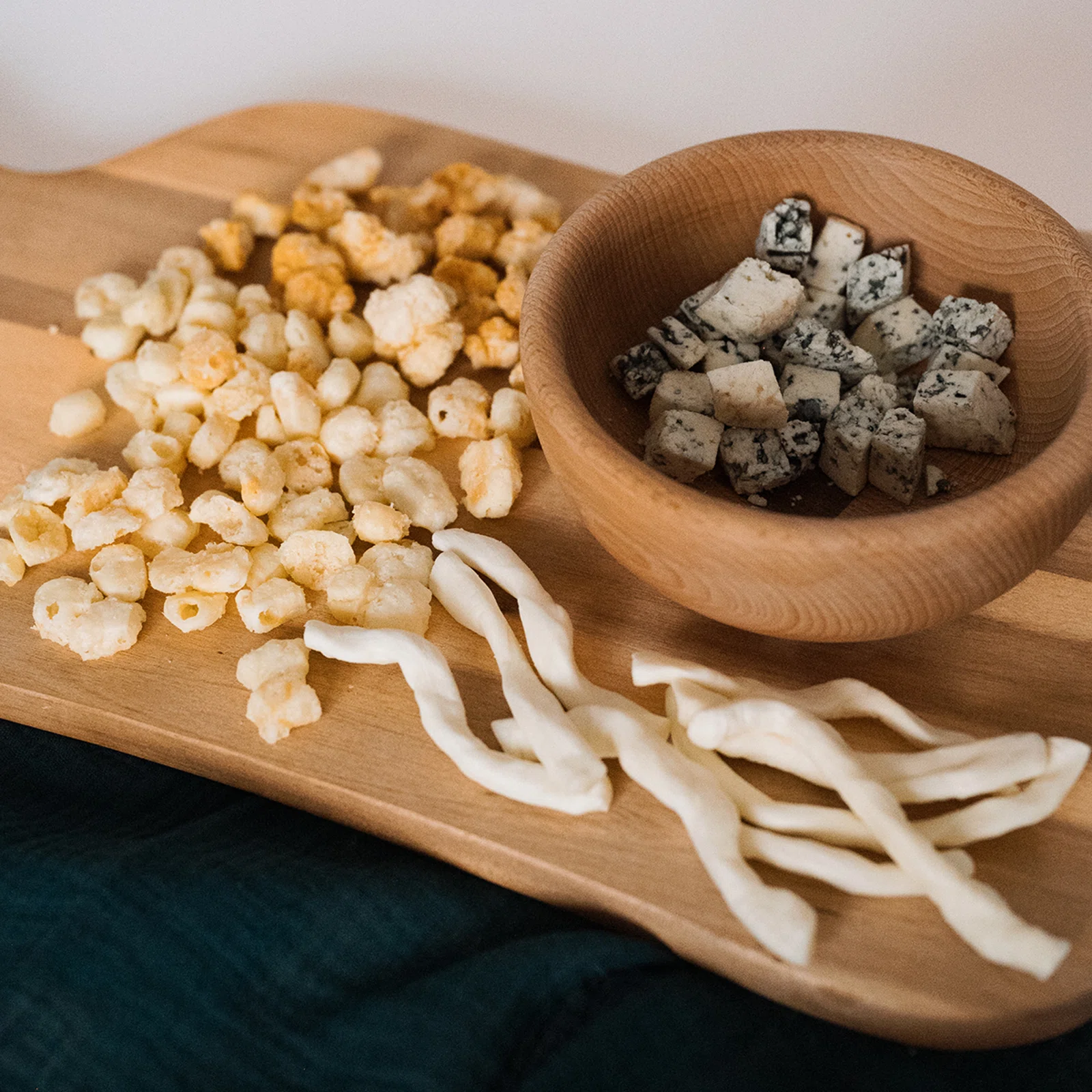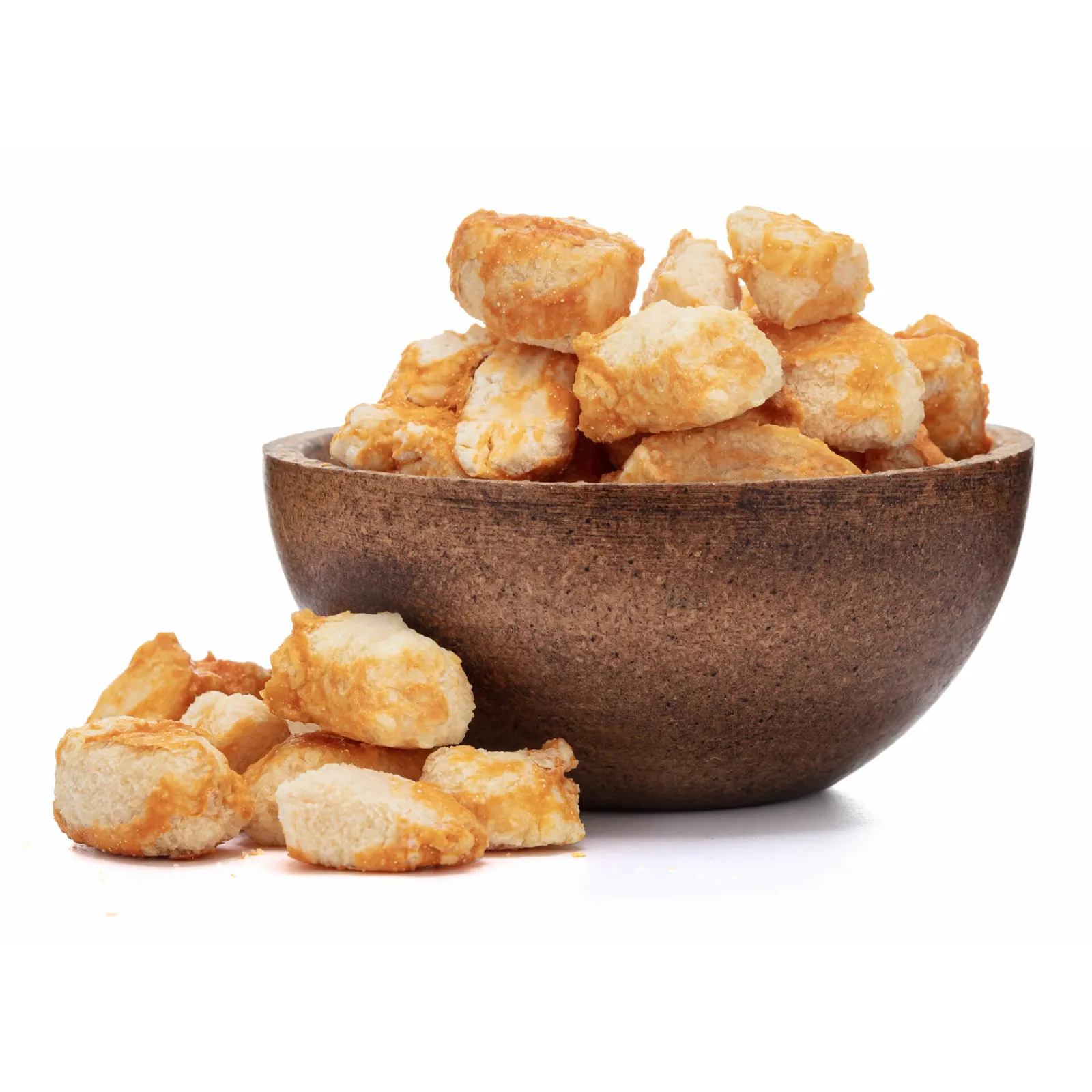 Száraz sajtkeverékünkben ementáli, gouda és cheddar sajtot talál. A sajtdarabok ropogósságukkal és egyedi ízükkel nyűgöznek le.