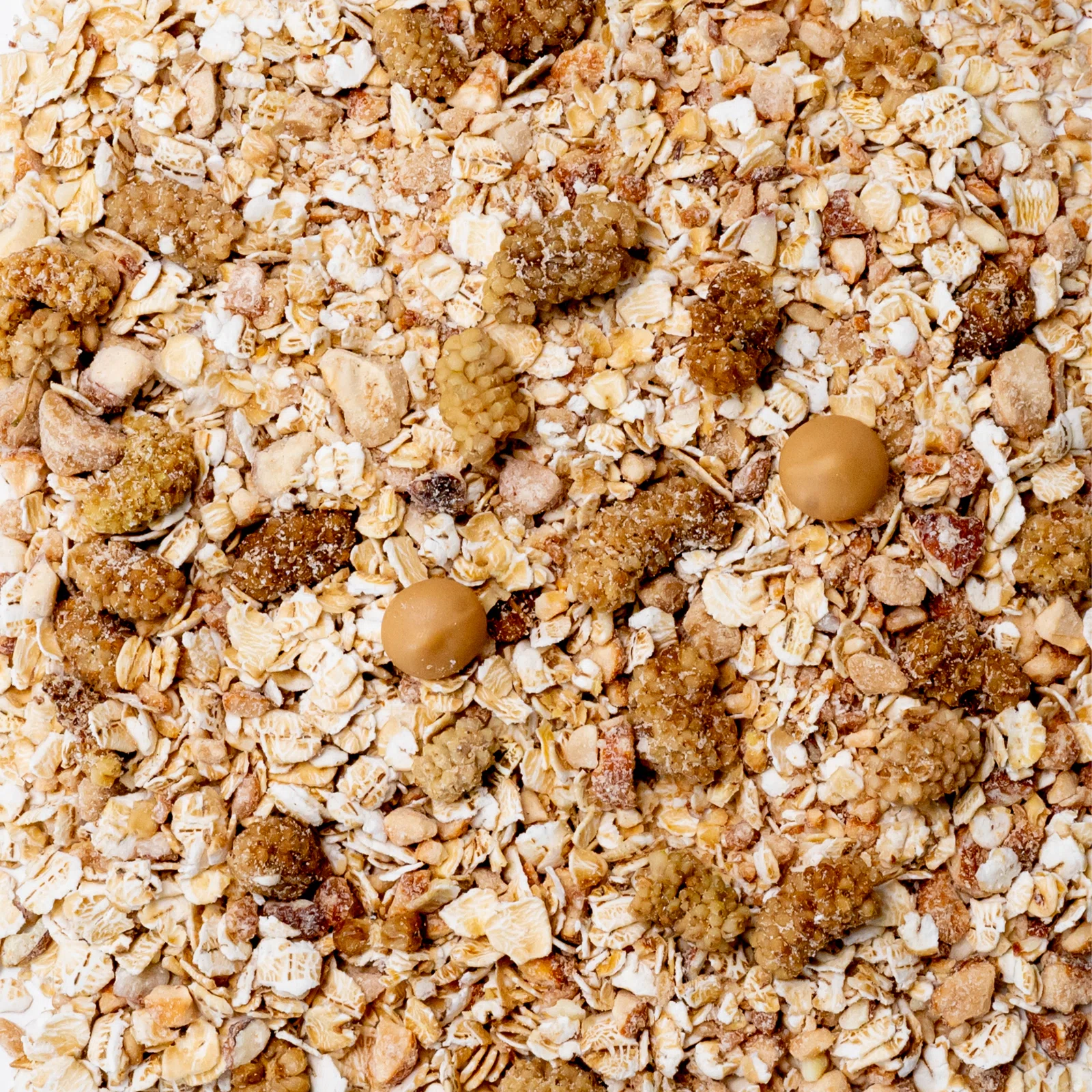 | Összetevők: | gluténmentes csíráztatott zabpehely 44%, sós karamellás kesudiódarabok (kesudió 76%, karamellizált cukor 18,5%, méz, tengeri só 2%), szárított fehér eperfa 15%, sós karamellás manduladarabok 12,5% (mandula 76%, karamellizált cukor 18,5%, méz, tengeri só 2%), belga fehér csokoládé karamellel (kakaóvaj, cukor, teljes tejpor, tejcukor, savópor, zsírszegény tejpor, karamellizált cukor 2%, emulgeálószer: szójalecitin; természetes vanília aroma, só). |