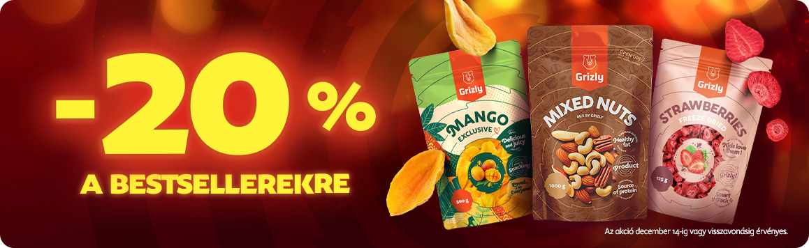 Brum chrum, a legfinomabb ajándékokat az egész családnak, az exkluzív vendégváró falatokat és az illatos karácsonyi süteményekhez szükséges minőségi alapanyagokat mind intézem én, Grizly. Most ráadásul 20% kedvezményt is igénybe vehettek közel 500 finomságra. Köztük vannak gyorsan fogyó karácsonyi limitált kiadások is. 🧡