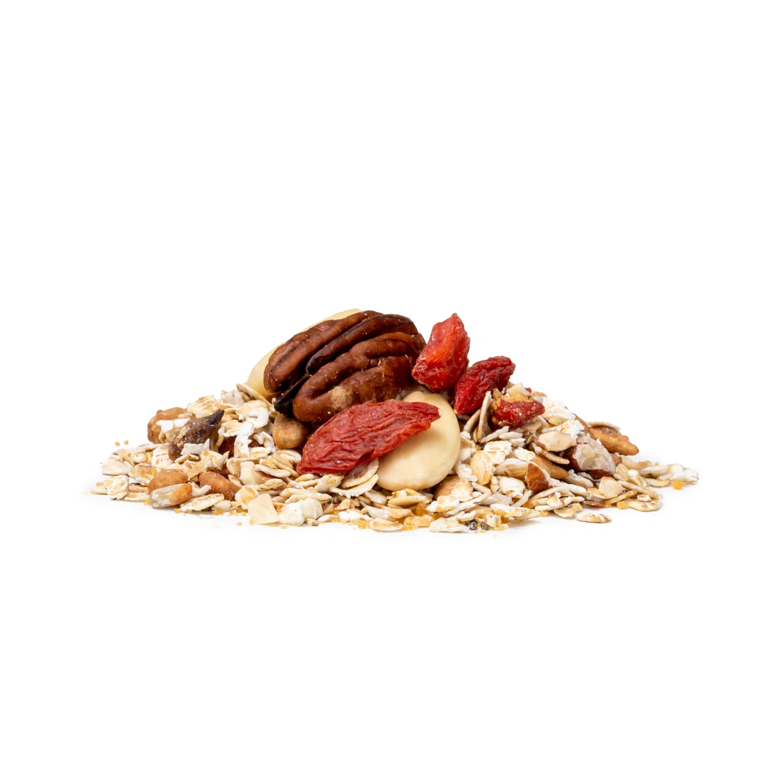 Ahogy mindig – csak jó dolgokból! Fenséges pirított pekándió- és manduladarabokat kevertünk gluténmentes csíráztatott zabpehelyhez, ami könnyebben emészthető, mint a nem csíráztatott gabona. Emellett a kása összetevői között megtalálható a chia mag, cukros-fahéjas napraforgómag, goji bogyó és szárított nádmelasz is.